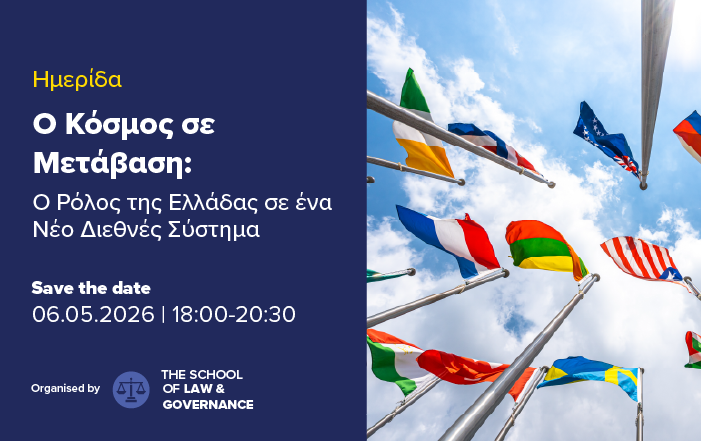 Η ΝΕΑ Σχολή Law & Governance του Mediterranean College παρουσιάζει την Ημερίδα με θέμα «Ο κόσμος σε μετάβαση: Πόλεμος, αναθεωρητισμός και ο ρόλος της Ελλάδας σε ένα νέο διεθνές σύστημα», η οποία θα πραγματοποιηθεί ΔΙΑ ΖΩΣΗΣ στις 06/05 @18:00–20:30, στις εγκαταστάσεις του Mediterranean College στην Αθήνα.