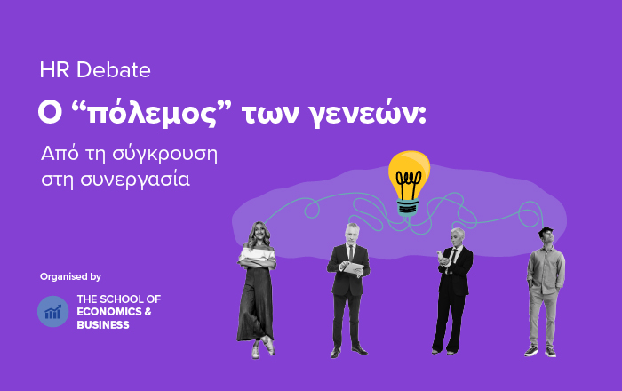 Η Σχολή Οικονομίας & Διοίκησης του Mediterranean College διοργανώνει ένα μοναδικό HR Debate με θέμα «Ο Πόλεμος των Γενεών: Από τη Σύγκρουση στη Συνεργασία», μια διαδραστική εκδήλωση αφιερωμένη στο μέλλον της εργασίας και τη συνεργασία μεταξύ διαφορετικών γενεών στον επαγγελματικό χώρο.